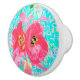 Zwei Rosy Red Coral Pum Crazy Hibiskus auf Aqua Keramikknauf