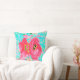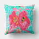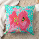 Zwei Rosy Red Coral Pum Crazy Hibiskus auf Aqua Kissen