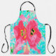 Zwei Rosy Red Coral Pum Crazy Hibiskus auf Aqua Schürze
