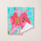 Zwei Rosy Red Coral Pum Crazy Hibiskus auf Aqua Waschlappen