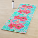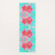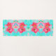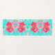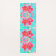 Zwei Rosy Red Coral Pum Crazy Hibiskus auf Aqua Yogamatte