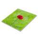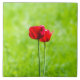 Zwei rote Tulpen am grünen Hintergrund und einige gelbe Wildblumen. Texturierte Fotografie.