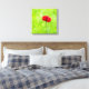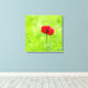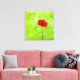 Zwei rote Tulpen am grünen Hintergrund und einige gelbe Wildblumen. Leinwand für die Zuhause oder Bürowand.