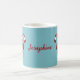 Zwei rote und weiße Süßigkeiten auf blau mit Namen Kaffeetasse