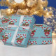 Zwei rote und weiße Süßigkeiten auf blau mit Text Geschenkpapier