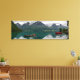 Leinwand einer Landschaft mit zwei alten Ruderbooten in einem See mit dem Spiegelbild der Berge im stillen Wasser des Hjelle Hotel, Hjelle, Stryn, Sogn og Fjordane, Norwegen. Es ist ein Panorama-Foto, perfekt, um Ihre Wand zu dekorieren.