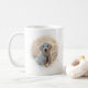 Personalisierbare Vorlage für das Foto eines Tiers durch Destei, die auch zwei personalisierbare Textbereiche in der Mitte der Tasse enthält. Personalisieren Sie Ihre persönlichen Daten mit dem Namen Ihres Haustieres und dem eigenen Text. Jede Seite der Tasse hat einen schönen, weißen Rahmen, der das Foto darunter in einer sanften und eleganten Art und Weise anzeigt. Die beige Textfarbe kann durch Eingabe des Designwerkzeugs auf eine andere Farbe geändert werden. Dort können Sie auch den Stil und die Größe des Schriftartes ändern, wenn Sie möchten. Dieses personalisierbare Fotomodell für Heimtiere eignet sich perfekt für jeden Besitzer oder als Geschenk.