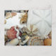Muschel auf See Postkarte. Bilder von hübschen Muscheln wie Meereskekse und Dollar, Sonnenuhr, Seeigel, rosa und orangefarbene Muscheln, Schnecken von Curly Wurm und andere Meereslebewesen bedecken die Vorderseite. Reverse ist leer, um für jeden Anlass zu verwenden, oder senden von einem tropischen Strand Urlaub.