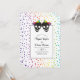 Dieses Halloween lesbische Hochzeitseinladung zeigt ein spielerisches Design mit einem Schädelpaar von zwei Brigaden, die mit Regenbogenbogen verziert sind. Die Einladung beinhaltet auch ein lustiges Muster aus bunten Konfetti, das die festliche und fröhliche Atmosphäre der Feier ergänzt.