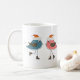 Ein blaues und rosa Vogelpaar, das Skaten Eis trägt und im Winter Gelb und Rot trägt, hat der Weihnachtsmann einen Hut. Sie haben Spaß beim gemeinsamen Eis, während sie einander anschauen. Ein romantisches grafisches Vektorgrafik-Design.