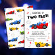 Zwei Fast 2nd Birthday Kids Racing Cars Einladung präsentiert niedliche und farbenfrohe Rennwagen mit dem Text "Two Fast" in modernem schwarzen Typografie-Skript mit der Zahl 2 und Doodles. Ideal für Kinder zum zweiten Geburtstag feiern. Senden Sie die E-Mail oder laden Sie sich einfach die zum Download verfügbare digitale Einladung herunter. Designed by Evco Studio. Für die Koordination von Elementen siehe www.zazzle.com/store/evcostudio