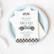 Zwei Fast Race Car 2. Geburtstag Einladung mit blauem Retro Rennwagen.