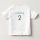 Fun Race Car Thema Geburtstag Shirt mit Aquarellbild Vintag blauen Wagen mit roten Flammen. Der Text auf der Vorderseite sagt "ZWEI FAST" und Sie können Ihren Kind und Name und Alter auf der Rückseite hinzufügen.