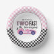 Zwei schnelle, rosa Rennwagen am zweiten Geburtsta Pappteller