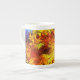 China Tasse mit dem Ölgemälde von Vincent van Gogh, zwei Schnittblumen (1887). Zwei schöne gelbe Sonnenblumen liegen vor einem lebendigen, blauen Hintergrund. Ein wunderbares Geschenk für die Fans von Post-Impressionismus und holländischer Kunst.