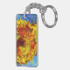 Schlüsselanhänger mit Vincent van Goghs Ölgemälde Zwei Schnittblumen (1887). Zwei schöne gelbe Sonnenblumen liegen vor einem lebendigen, blauen Hintergrund. Ein wunderbares Geschenk für die Fans von Post-Impressionismus und holländischer Kunst.