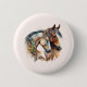 Schaltfläche mit einem Bild mit einem Paar Pferde. Tragen dekorativer Headbands. Umgeben von Federn und Blättern.