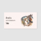 Name Tag mit einem Bild mit einem Paar Pferde. Tragen dekorativer Headbands. Umgeben von Federn und Blättern.