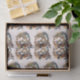 Gewebepapier mit einem Bild mit einem Pferdepaar. Tragen dekorativer Headbands. Umgeben von Federn und Blättern.