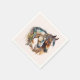 Papierservietten mit einem Bild mit einem Paar Pferde. Tragen dekorativer Headbands. Umgeben von Federn und Blättern.