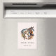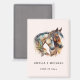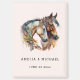 Die Hochzeit speichert den Datums-Magneten mit einem Bild mit einem Paar Pferde. Tragen dekorativer Headbands. Umgeben von Federn und Blättern.