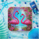 Zwei schöne rosa Flamingos in Liebe Grafik Pappteller