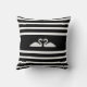 Zwei Schwäne auf schwarz-weiß gestreiftem Hintergrund Throw Kissen.
