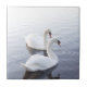 Zwei Schwäne schwimmen am ruhigen See Fliese