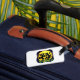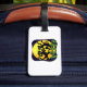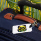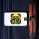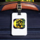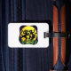Zwei schwarze Katzen sitzen mit einer riesigen gelben Sonne im Hintergrund. Dieses Design sieht auf diesen Gepäckanhängern wirklich effektiv aus