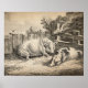 Dieses Design verfügt über eine Ätzung mit Aquatinta und graue Waschung des englischen Künstlers George Morland (1763-1804). Es zeigt zwei Schweine, die im Stroh schlafen. Es ist ein schöner Ort des ländlichen Lebens. Abhängig davon, wie das Bild beschnitten wird, um eine perfekte Passform für diesen Gegenstand zu schaffen, können Sie die Initialen G.M. auf einem der Zaunpfosten sehen. Auf einem anderen Zaunpfosten kann man auch einen besonders mutigen, stehenden Vogel sehen.