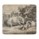 Dieses Design verfügt über eine Ätzung mit Aquatinta und graue Waschung des englischen Künstlers George Morland (1763-1804). Es zeigt zwei Schweine, die im Stroh schlafen. Es ist ein schöner Ort des ländlichen Lebens. Abhängig davon, wie das Bild beschnitten wird, um eine perfekte Passform für diesen Gegenstand zu schaffen, können Sie die Initialen G.M. auf einem der Zaunpfosten sehen. Auf einem anderen Zaunpfosten kann man auch einen besonders mutigen, stehenden Vogel sehen.