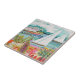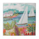 Zwei Segelboote und Hütte II von Karen Fields. Zwei Segelboote schwimmen im Wasser, umgeben von bunten Blume und Hütten.