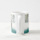 Fügen Sie Ihre eigenen Fotos zu einem besonderen personalisierten Geschenk. Diese Tasse kann mit zwei Fotos angepasst werden. Es gibt einen Platz, um einen auf der links Seite und einen anderen auf der rechten Seite hinzuzufügen. Unter jedem Foto befindet sich ein Platz, um einen eigenen Text in fett antiken Elfenbeinbuchstaben zu schreiben, der gegen ein dunkles, aquamarines Overlay angebracht wird.