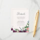 Hübsches Drehbuch mit wunderschönen Pflaumen und blütenfarbenen Aquarellelementen und Grünpflanzen auf einem kaum zu treffenden pfirsichfarbenen Hintergrund sind die schönen Merkmale dieser schicken zweiseitigen Gästekarte. In dieser romantischen Kollektion finden Sie passende Einladungen und Mailing-Accessoires.