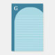 Mit Monogramm und ausgekleidetes Notizblock in zwei Blautönen, mit dem Anfang oben und einer hellblauen Bogen-Form mit praktischen weißen Linien für Ihre Notiz, zu tun Listen, und Erinnerungen! Blue Post-it Notizblock personalisiert mit Ihrem Monogramm, in zwei verschiedenen Farbtönen, ein tiefer blau und ein hellblau, und mit einer ausgekleideten Seite.