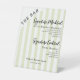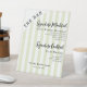 Zwei Signature Drinks Mocktail oder Cocktail Bar Sign - Lass den Gästen, die Ihre Unterschrift Drinks mit diesem schlichten und eleganten 2 Signature Drinks Bar Podestschild wissen. Ob Cocktails, Spottails oder beides. Ideal für Babyduschen, Brautpartys, Hochzeiten, Geburtstagspartys und vieles mehr. Das Design ist in einem Retro-Design mit Vintager Ästhetik und einem gestreiften, hellgrünen und weißen Hintergrund gehalten. Alle Texte können bearbeitet werden.
