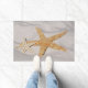 Ein kleiner umgeworfener Starfish legt in den Sand mit einem großen Starfish.