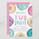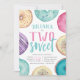 Niedliches Dessert Thema zweite Geburtstagsfeier Einladung "[Name] is two sweet" in der Mitte mit Ihren Party Details darunter, umgeben von Aquarellbilder in Neutronen, Rosa und Aqua.