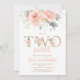 ZWEI Sweet Blush Pink Floral Gold Zweiter Geburtstag Einladung