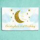 Zwei der Mond! 2. Geburtstag mit Goldmond und Sternen mit blauem Aquarellhintergrund