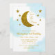 Zwei der Mond! 2. Geburtstag mit Goldmond und Sternen mit blauem Aquarellhintergrund