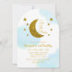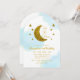 Zwei der Mond! 2. Geburtstag mit Goldmond und Sternen mit blauem Aquarellhintergrund