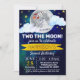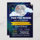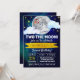 Diese niedlichen Weltraum-Einladungen sind perfekt für jeden, der einen zweiten Geburtstag feiert. Das Design zeichnet sich durch einen hellen Mond mit Raketenschiff und Wolken auf einem sternenförmigen Aquarellhintergrund aus, mit leicht zu personalisierender Vorlagenformulierung.