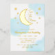 Zwei der Mond! 2. Geburtstag mit Goldmond und Sternen mit blauem Aquarellhintergrund