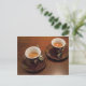 zwei Tassen frisch gebrühten Espressokaffees auf e Postkarte