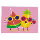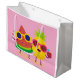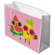 Eine lustige und helle rosa und gelbe Geschenktasche für ein Geschenk an Zwillinge! Ideal für eine Babydusche oder eine Geburtstagsfeier. Wassermelone und Ananas amüsieren sich in der Sonne!