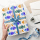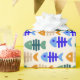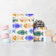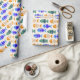 Farbenfrohe und niedliche Packpapiere zeichnen sich durch ein duales Fischknochenmuster in den Farben Grün, Blau und Orange aus. Personalisiert mit deinem Namen.