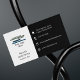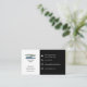 Berufliche Visitenkarte in Schwarzweiß personalisiert mit Logo, Name und Titel. Fügen Sie neben kleinen Symbolen Adresse, Telefonnummer, E-Mail und Website hinzu.