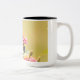 Eine schöne zweifarbige Tasse mit Bild eines wunderschönen gemalten Schmetterlings, der auf wunderschönen Lantana-Blume gekrönt ist. Ich habe dieses Foto in Nottingham Maryland gemacht.