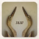 Zwei Weathered Holzhelden stehen mit Ihren personalisierten Initialen auf diesen Untersetzer in Beige- und Bräunungsfarben gegenüber. Das Design basiert auf einer alten Holzschnitzerei eines Seevögels. Personalisieren Sie das Set mit Initialen. Dieses Bild ist eine originale Kunstfotografie von JLW_FOTOGRAFIE